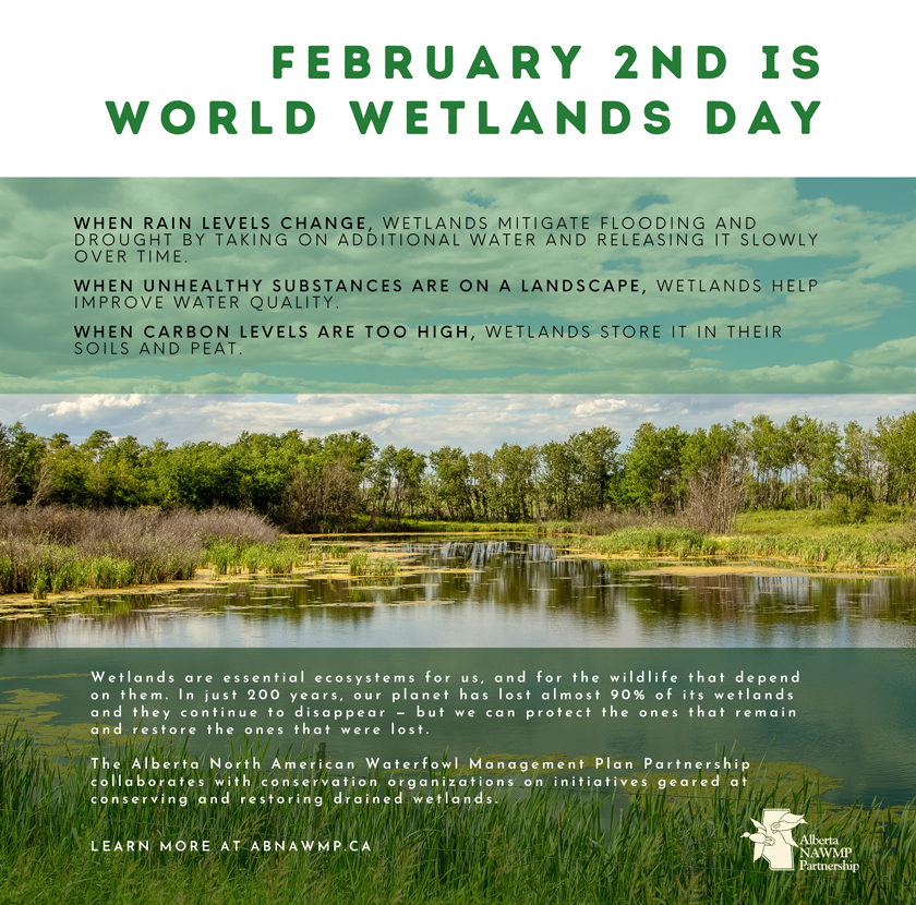 The Alberta North American Waterfowl Management Plan Partnership collaborates with several conservation organizations on initiatives geared at conserving and restoring drained wetlands. Wetland ecosystems protect the planet’s citizens from extreme weather events while simultaneously storing carbon and improving water quality. And, as the climate crisis heats up and extreme weather events become more frequent, protecting and restoring these critical landscapes will be vital.